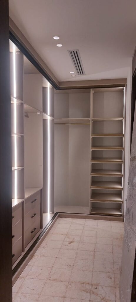 دواليب ملابس مخصصة بتصميم عصري يناسب احتياجاتك. يمكننا تصميم دواليب بأرفف متعددة ومساحات تخزين متنوعة،